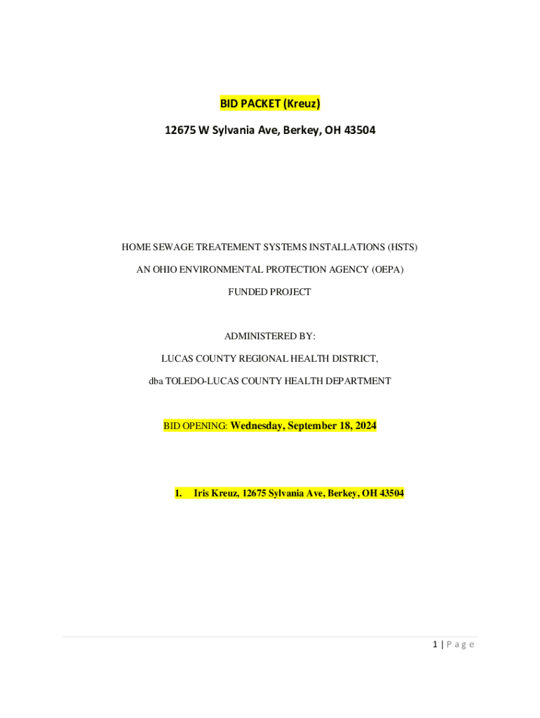 The Bid Packet Kreuz 12675 Form consists of several key sections, each serving its unique purpose. Understanding these sections is essential for accurate completion and submission.