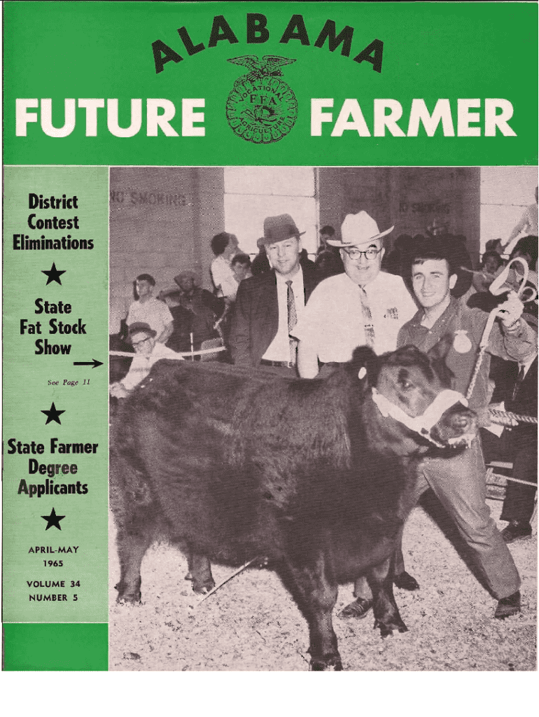 District Contest Eliminations*r\"State Fat Stock Show.. .See Page 11*.State FarRIer Degree Applicants*A PRILMAY 1965 VOLUME 34 NUMBER 5 ,.....,This I BelieveOn The CoverBy FRANKIE COBB State Vice President I believe that the future of farming is going to be highly dependent upon the amount of education and courage that a future farmer should and will have to possess. Let us think back over a verse in the Creed In the promise of days through better ways, even as the