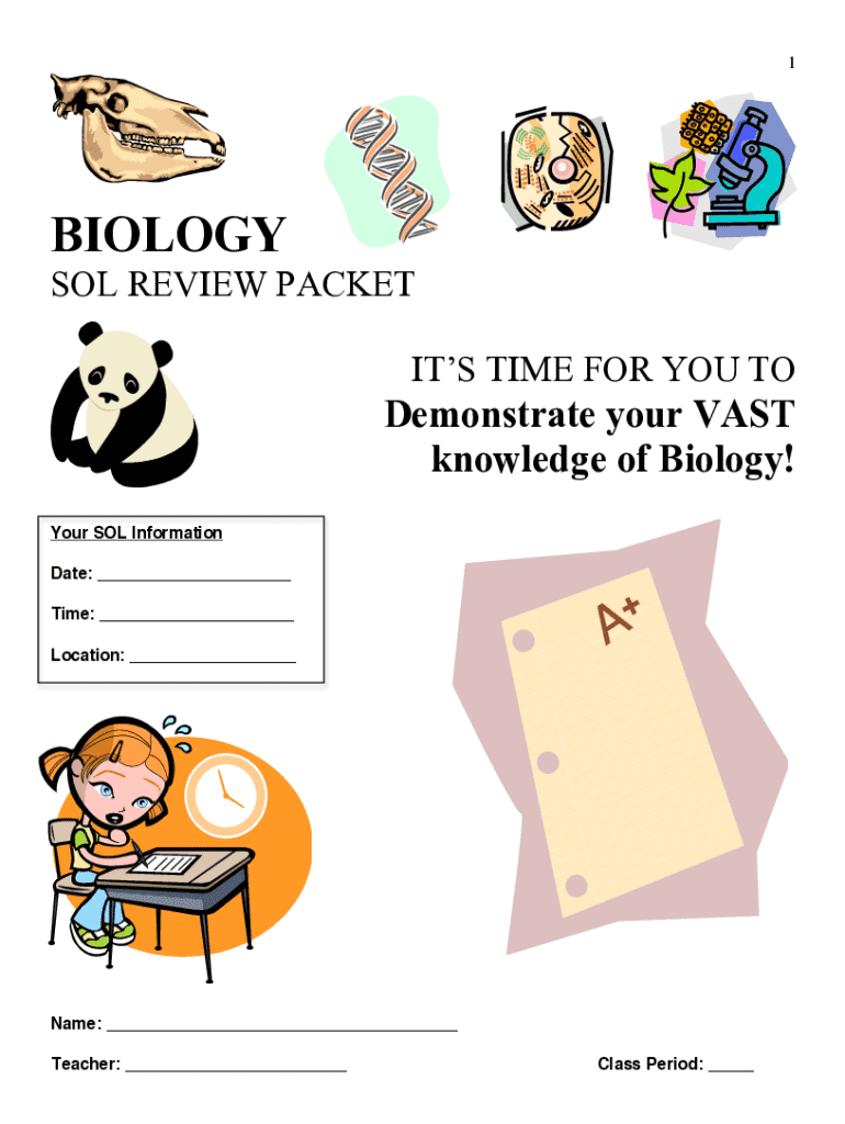 The Biology SOL Review Packet is a strategic educational tool designed to assist students in preparing for the Standards of Learning (SOL) assessments in biology, mandated in Virginia. Its primary purpose is to consolidate key biological concepts and skills through an organized framework, facilitating effective review and self-assessment.