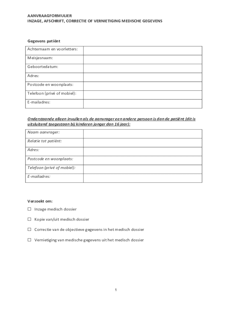 Het doel van het formulier is om patiënten de mogelijkheid te geven om toegang te krijgen tot hun medische gegevens en om gegevens bij zorgverleners aan te vragen.