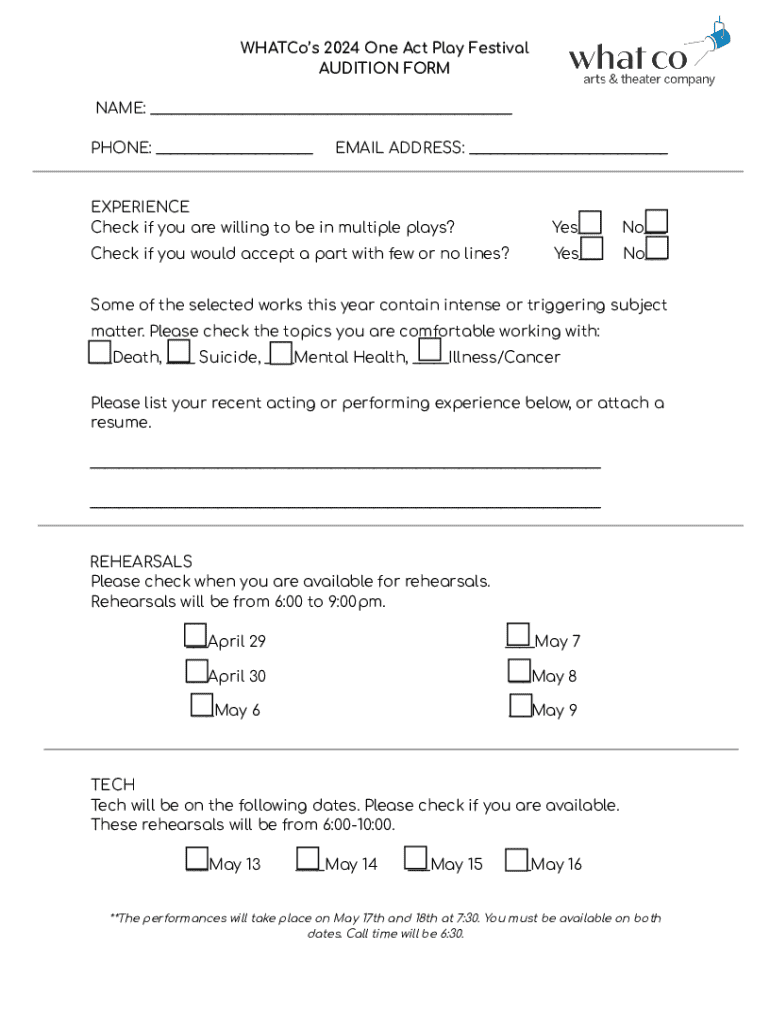 Get the free One Act Festival - Audition Form