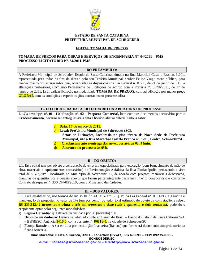 The 201, representada para todos os fins de direito pelo seu Prefeito Municipal, senhor Felipe Voigt, torna pblico, para conhecimento dos interessados que, observadas as disposies da Lei Federal n is a Word document required to be submitted to the specific address in order to provide some info. It has to be completed and signed, which can be done manually in hard copy, or by using a particular solution like PDFfiller. This tool helps to fill out any PDF or Word document directly from your browser (no software requred), customize it according to your requirements and put a legally-binding e-signature. Right away after completion, user can easily send the 201, representada para todos os fins de direito pelo seu Prefeito Municipal, senhor Felipe Voigt, torna pblico, para conhecimento dos interessados que, observadas as disposies da Lei Federal n to the appropriate receiver, or multiple recipients via email or fax. The blank is printable as well thanks to PDFfiller feature and options offered for printing out adjustment. In both digital and physical appearance, your form will have a neat and professional look. You may also save it as the template to use later, so you don't need to create a new file from scratch. Just customize the ready document.
