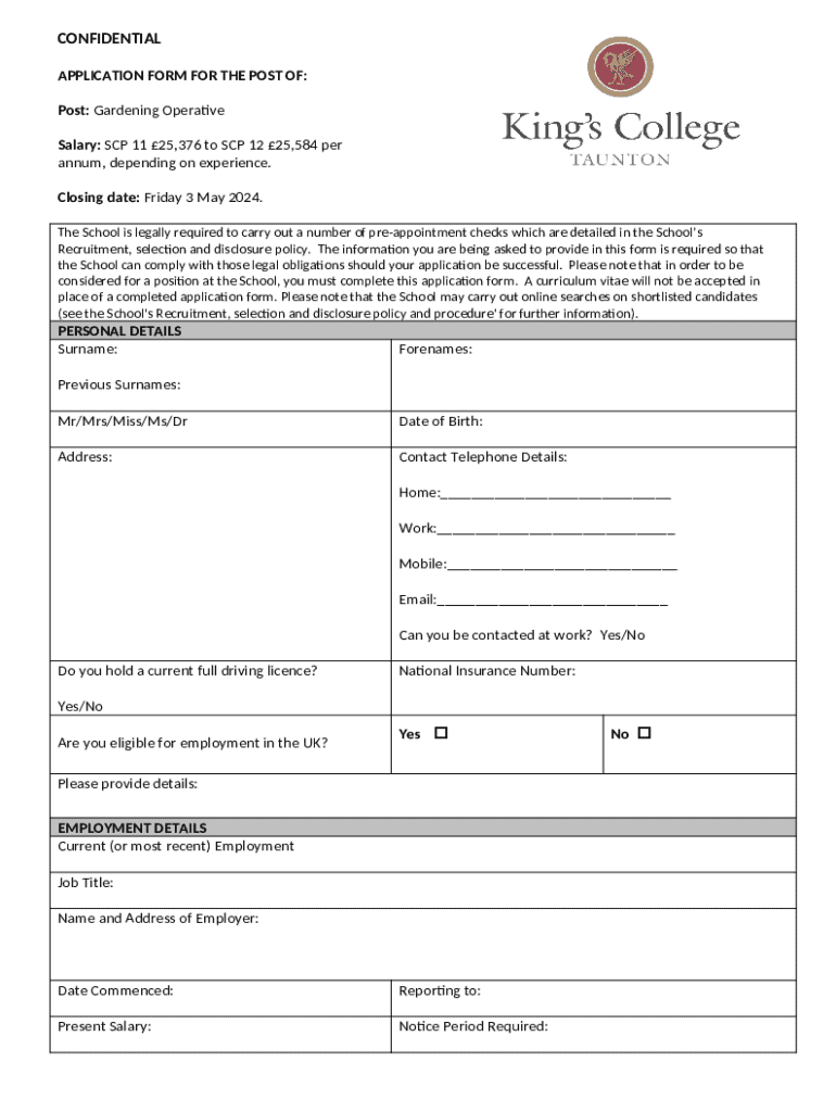 What is Working at King's - King's College Taunton - Independent ... Form?