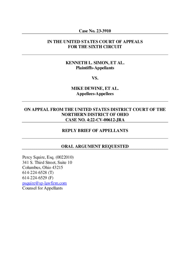 Get the free 22-612 - Simon et al v. DeWine et al - Content Details -