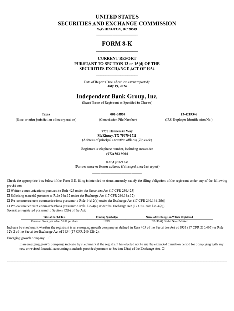 Get the free FORM 8-K Independent Bank Group, Inc. - cloudfront.net
