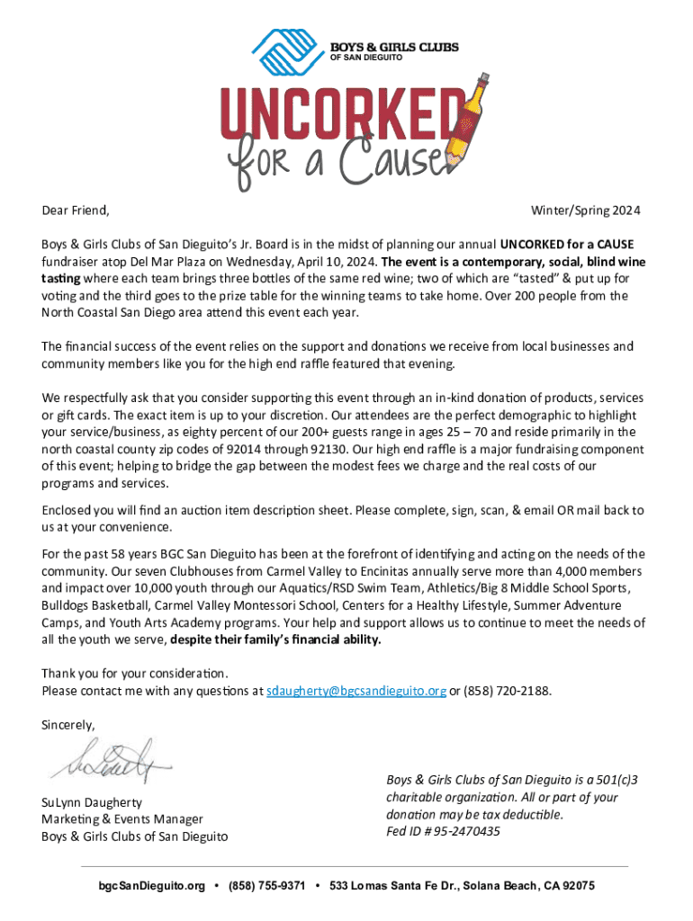 While filling out the Uncorked for a Cause form is crucial, enhancing your contribution can take your involvement to the next level. Explore additional fundraising ideas like hosting themed parties, organizing a wine tasting at your place, or creating a crowdfunding campaign linked to the event.