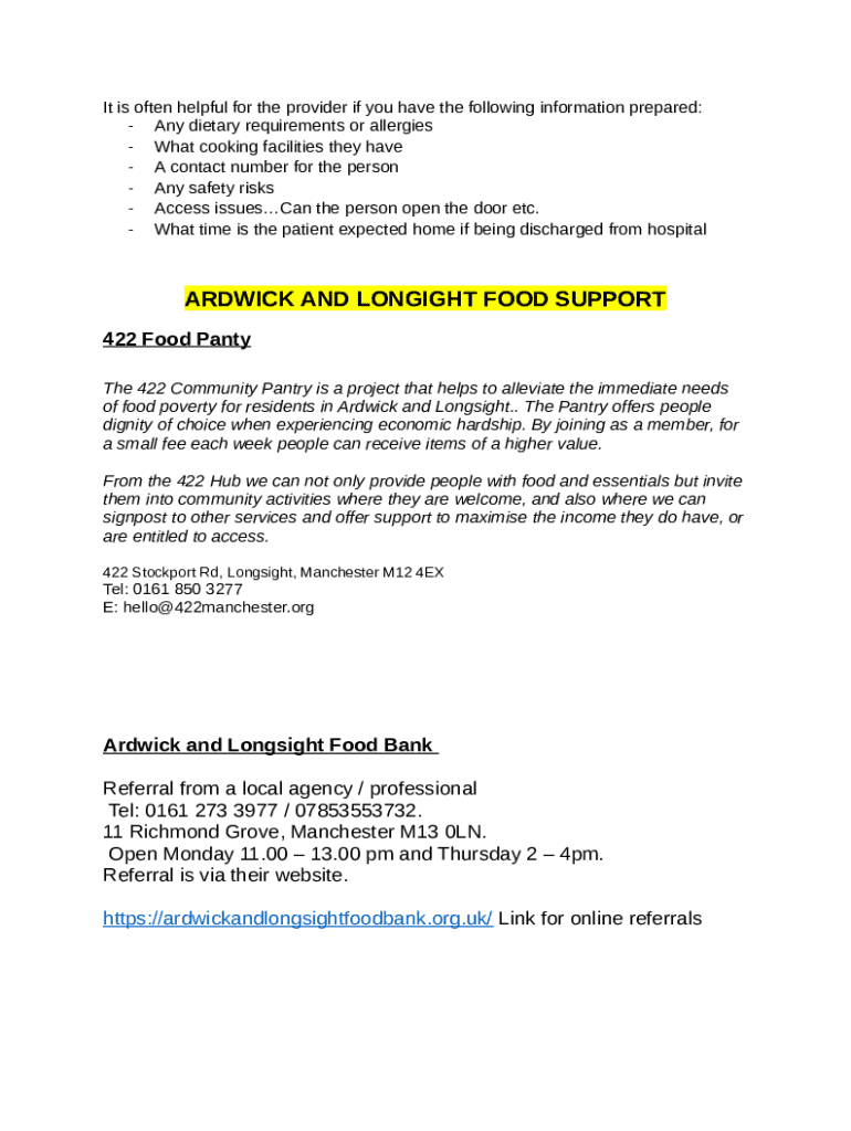 How to fill out Ardwick and Longsight Food Bank