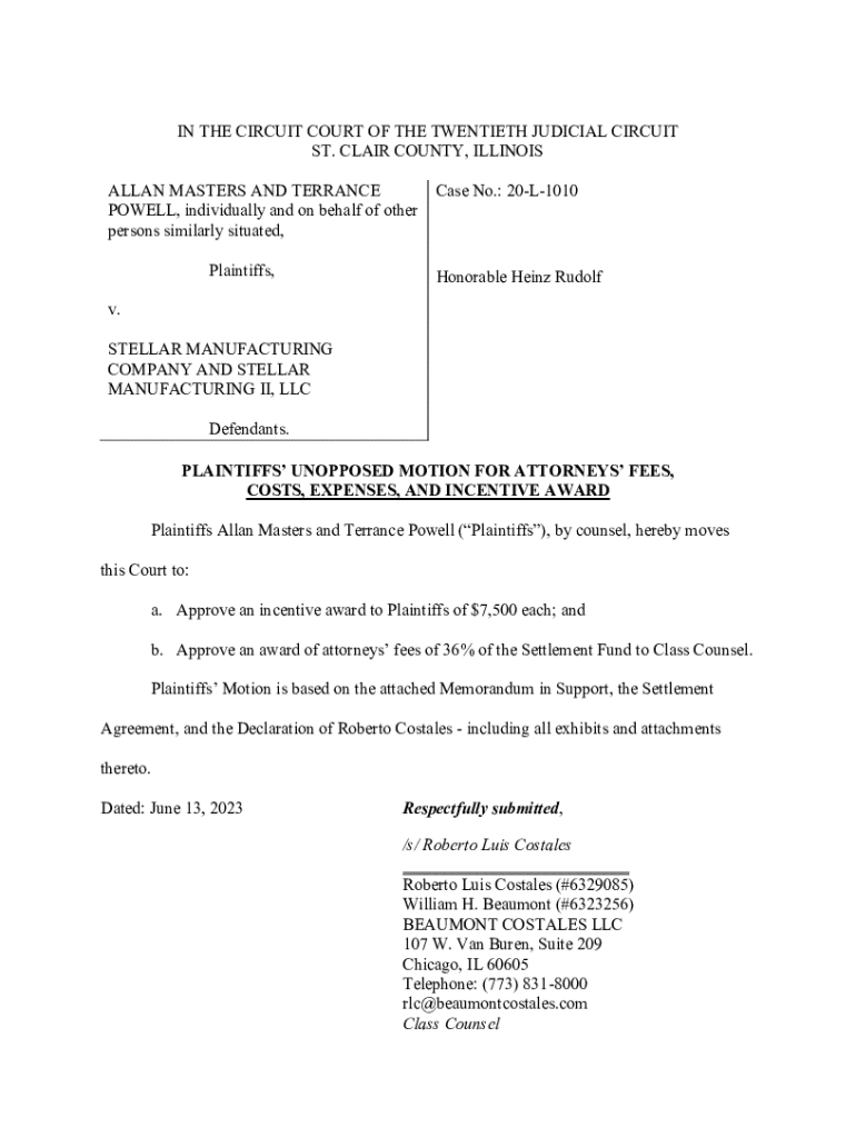 IN THE CIRCUIT COURT OF THE TWENTIETH JUDICIAL CIRCUIT ST. CLAIR COUNTY, ILLINOIS ALLAN MASTERS AND TERRANCE POWELL, individually and on behalf of other persons similarly situated, Plaintiffs,Case