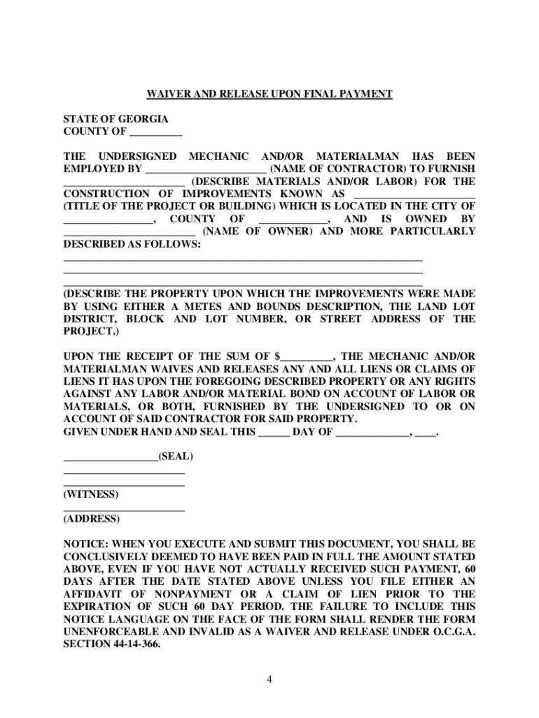 WAIVER AND RELEASE UPON FINAL PAYMENT