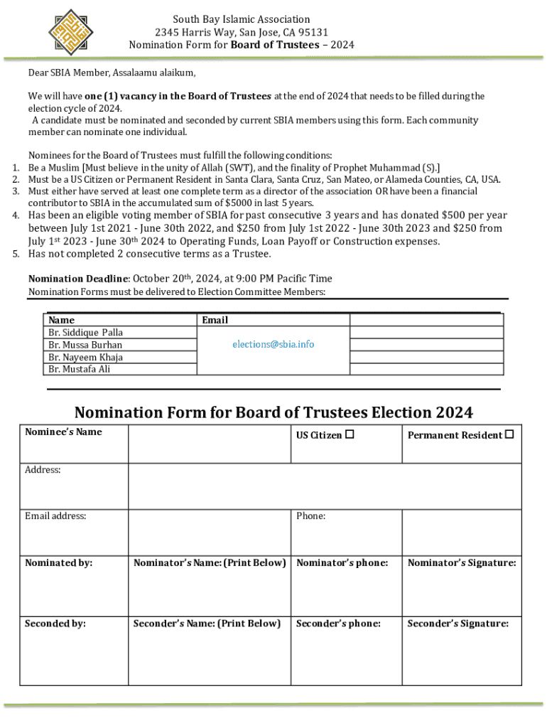 Equally important is detailing position requirements. This section should specify the name of the position for which the individual is being nominated as well as the anticipated term length. These factors provide clarity for both applicants and the organization, ensuring that everyone is aligned with expectations. Additionally, the mechanism for nomination—whether self-nomination or third-party nomination—needs to be clearly indicated, along with any required signatures to validate the nomination.