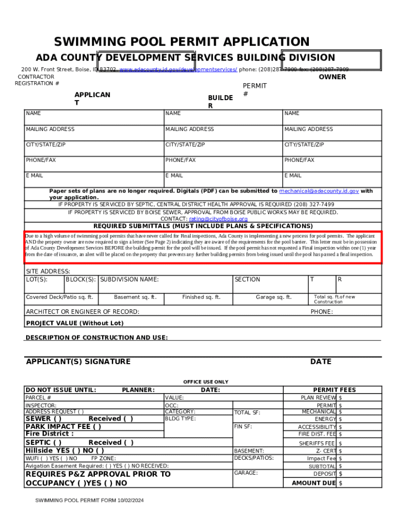 Filling out the ADA Form on pdfFiller requires some essential information. Key components include your personal details, detailed project information, and specific accessibility features you plan to incorporate. Being meticulous in this process is crucial to avoid delays in your project.