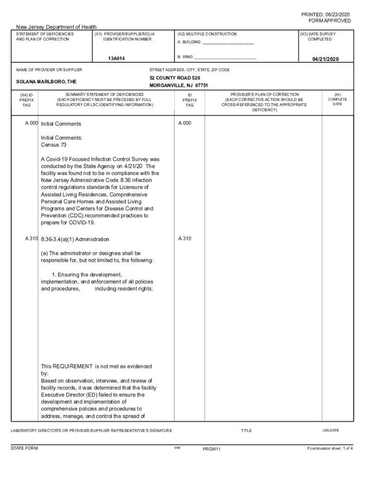 Get the free New Jersey Department of Health 03/25/2022 C S 000 Initial ...