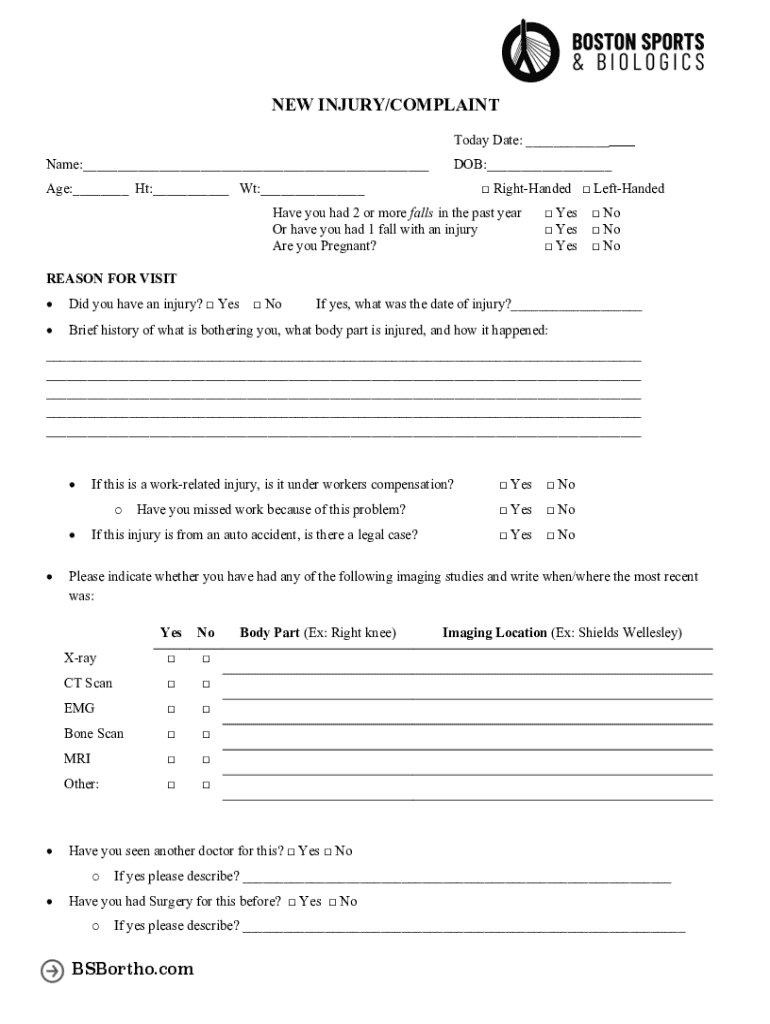 Get the free NEW INJURY/COMPLAINT - Carpal Tunnel