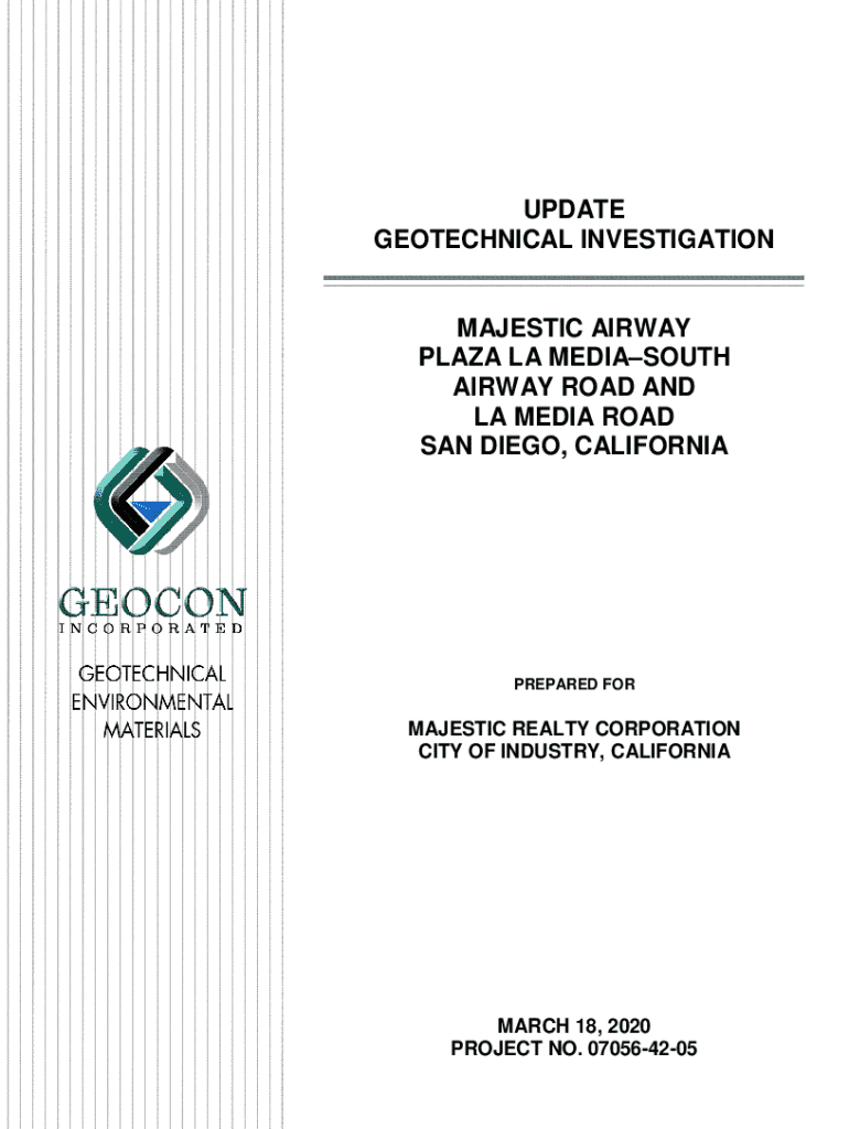 UPDATE GEOTECHNICAL INVESTIGATIONMAJESTIC AIRWAY PLAZA LA MEDIASOUTH AIRWAY ROAD AND LA MEDIA ROAD SAN DIEGO, CALIFORNIAPREPARED FORMAJESTIC REALTY CORPORATION CITY OF INDUSTRY, CALIFORNIAMARCH 18,