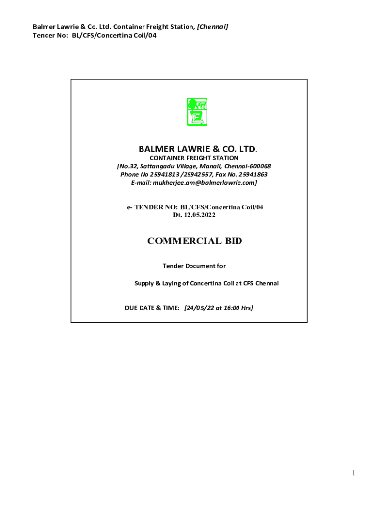 Overview of Tender No BLCFS Concertina Coil 04 Form