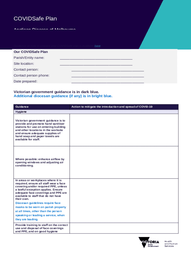 How should you fill out the How to prepare your COVIDSafe Plan template