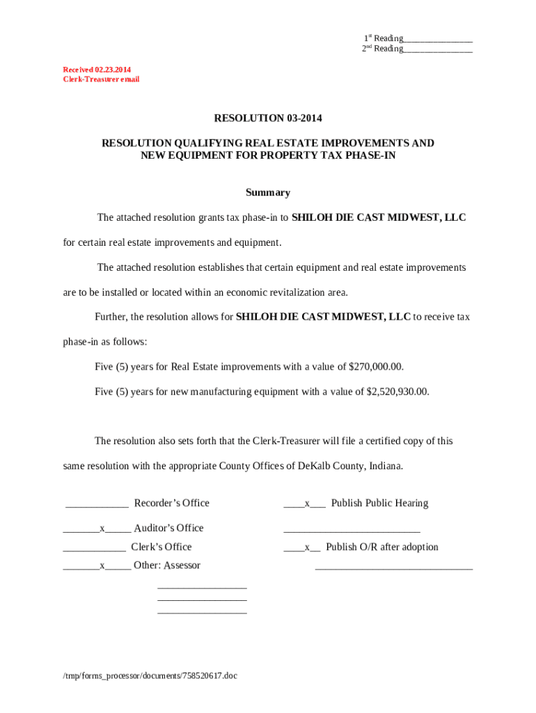 The NEW EQUIPMENT FOR PROPERTY TAX PHASE-IN is a Word document that should be submitted to the relevant address to provide some info. It needs to be filled-out and signed, which may be done manually in hard copy, or via a certain solution e. g. PDFfiller. This tool allows to fill out any PDF or Word document right in the web, customize it according to your requirements and put a legally-binding e-signature. Right away after completion, the user can send the NEW EQUIPMENT FOR PROPERTY TAX PHASE-IN to the appropriate receiver, or multiple individuals via email or fax. The editable template is printable as well from PDFfiller feature and options offered for printing out adjustment. Both in electronic and in hard copy, your form should have a clean and professional outlook. You can also save it as the template to use it later, so you don't need to create a new file again. All that needed is to customize the ready form.