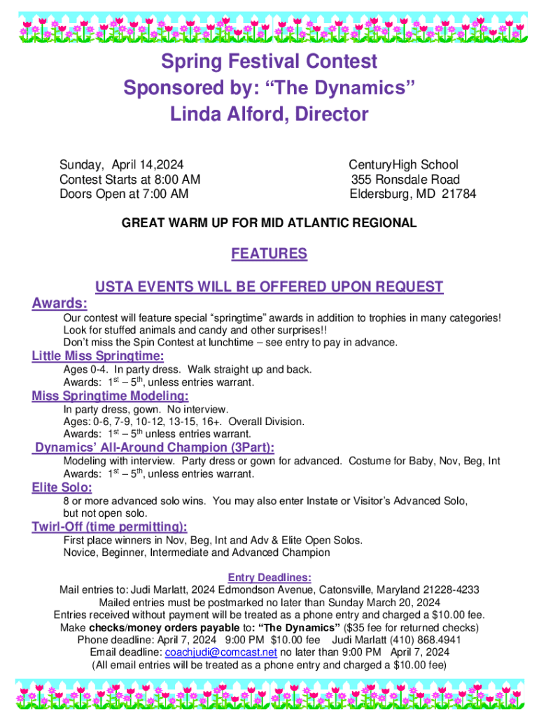 Creating a successful baton twirling contest calendar involves several key components. Understanding the details of each section is vital for clarity and efficiency. The following elements are essential when setting up your contest calendar.