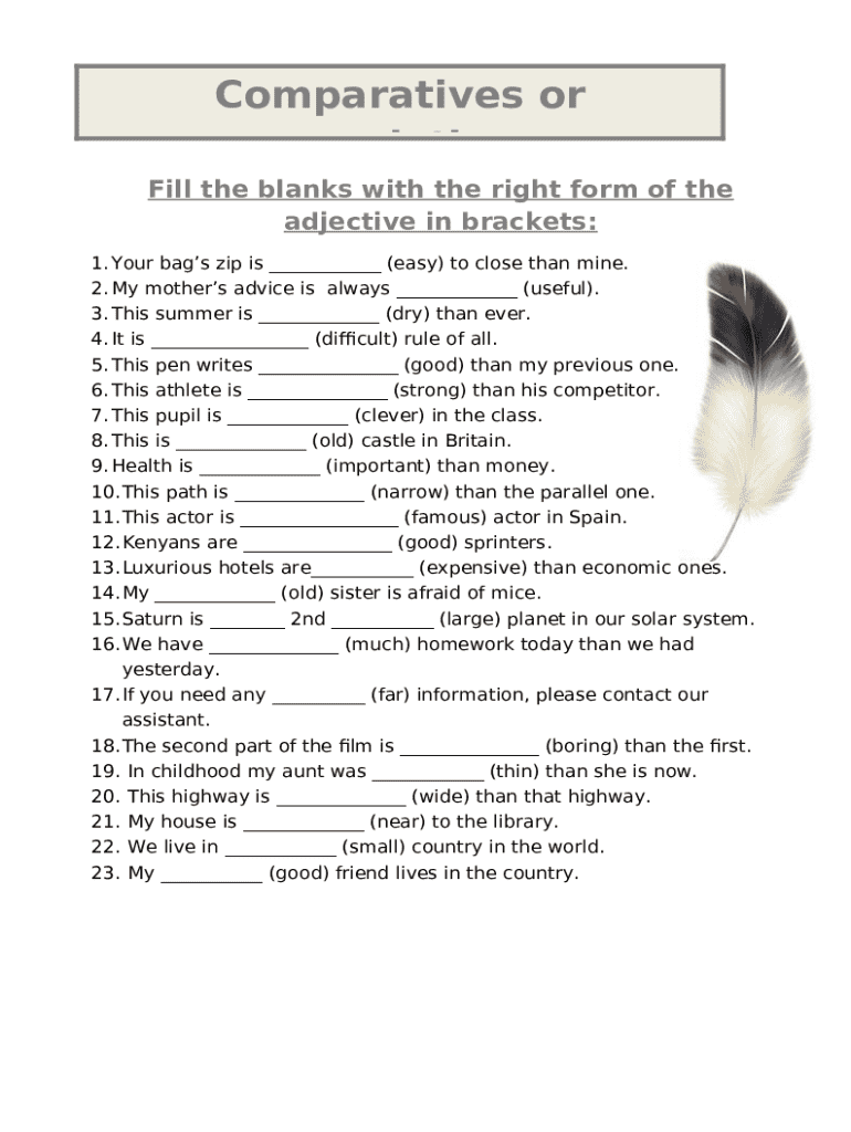 - Get the Fill the blanks with the right of the adjective in brackets ... form in PDFfiller’s catalogue.