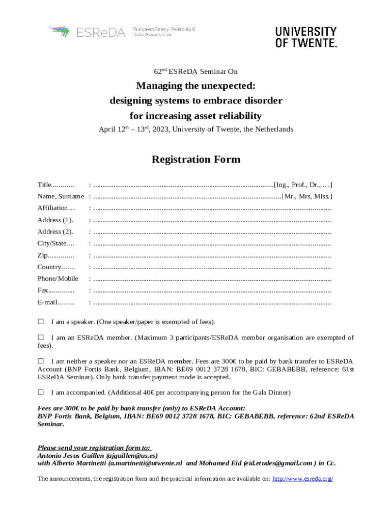 The 62nd ESReDA Seminar on Form is a pivotal event designed to foster discussion among professionals dedicated to improving asset reliability and managing operational disorder. It is a significant gathering for stakeholders including engineers, researchers, and operational managers, aiming to exchange insights and strategies pertinent to the contemporary challenges in asset management.