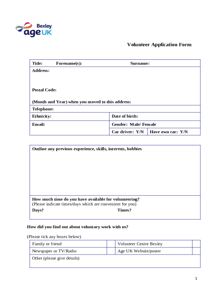 How to fill Age UK Barnet Volunteer Application word template