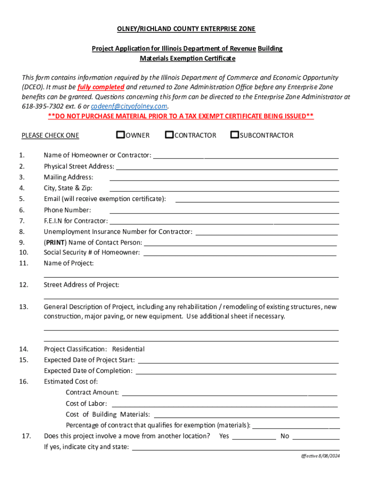 Certain entities are eligible to apply for the building materials exemption certificate, primarily including local governments, non-profit organizations, educational institutions, and other qualifying exempt entities. For instance, municipalities embarking on public infrastructure improvements, or non-profits constructing community centers can benefit from this exemption.
