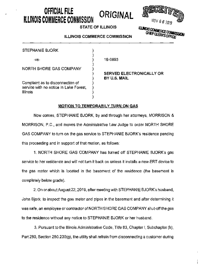 ,OFFICIAL FILE ORIGINAL fLLINOIS COMMERCE COMMISSION STATE OF ILLINOIS ILLINOIS COMMERCE COMMISSIONSTEPHANIE BJORK vsNORTH SHORE GAS COMPANYComplaint as to disconnection of service with no notice