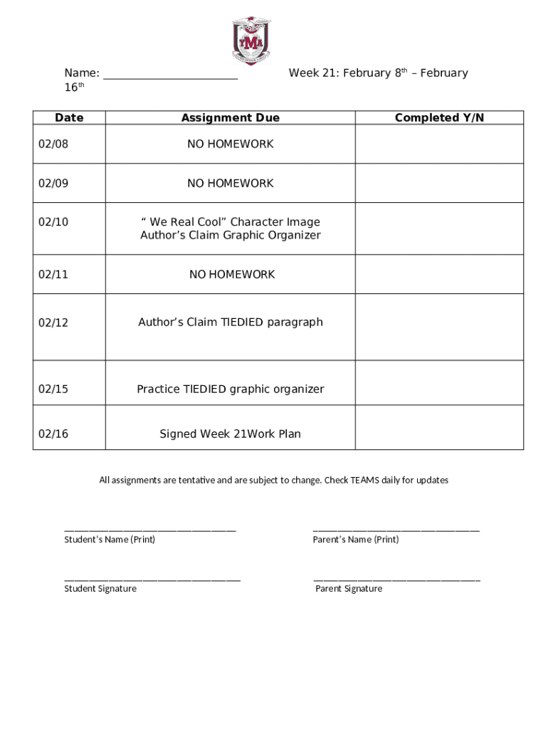 The Name: Week 21: February 8th February 16th is a document that should be submitted to the relevant address in order to provide some information. It has to be completed and signed, which can be done manually in hard copy, or via a certain solution e. g. PDFfiller. It lets you complete any PDF or Word document directly in your browser, customize it depending on your purposes and put a legally-binding e-signature. Right away after completion, you can easily send the Name: Week 21: February 8th February 16th to the appropriate recipient, or multiple individuals via email or fax. The template is printable as well from PDFfiller feature and options offered for printing out adjustment. Both in digital and physical appearance, your form will have a organized and professional look. Also you can turn it into a template to use later, there's no need to create a new document again. You need just to amend the ready template.