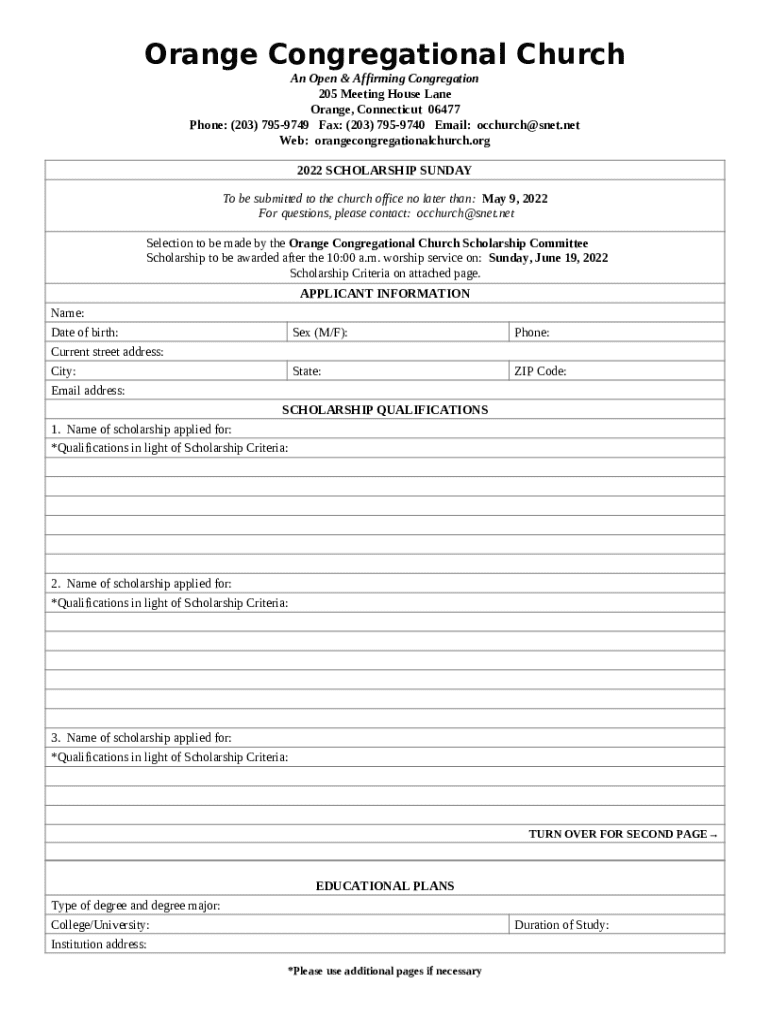 Instructions for the Orange Congregational Church UCCOrange CT form