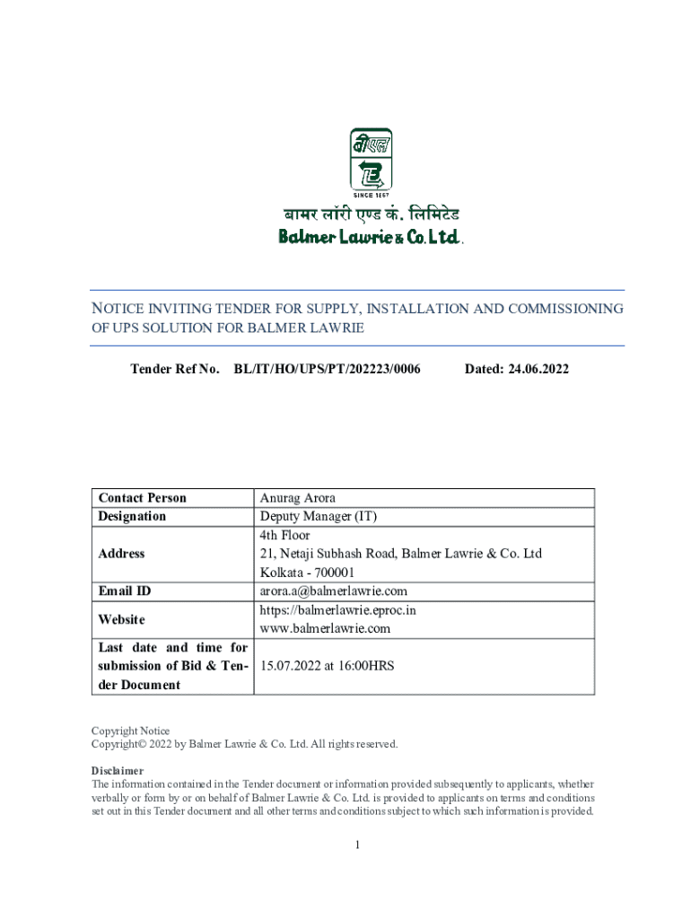 Get the free NOTICE INVITING TENDER FOR SUPPLY, INSTALLATION AND COMMISSIONING