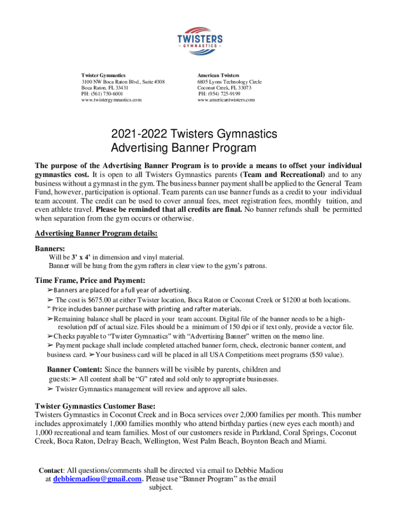 Get the free Twisters Gymnastics - Boca Raton: Welcome to Twisters