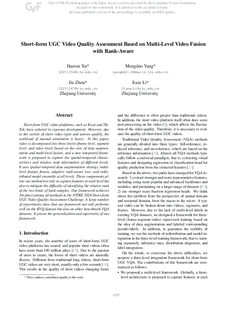 Get the free Short-form UGC Video Quality Assessment Based on Multi-Level Video Fusion with Rank-...