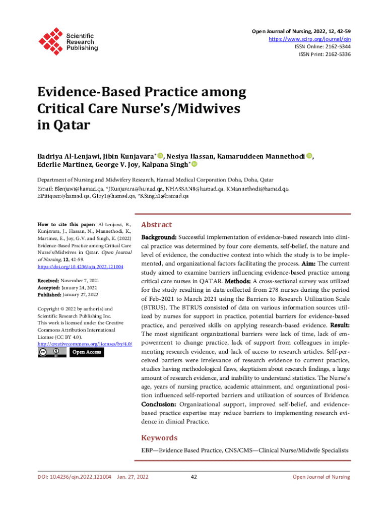Get the free Evidence-Based Practice among Critical Care Nurse's ...