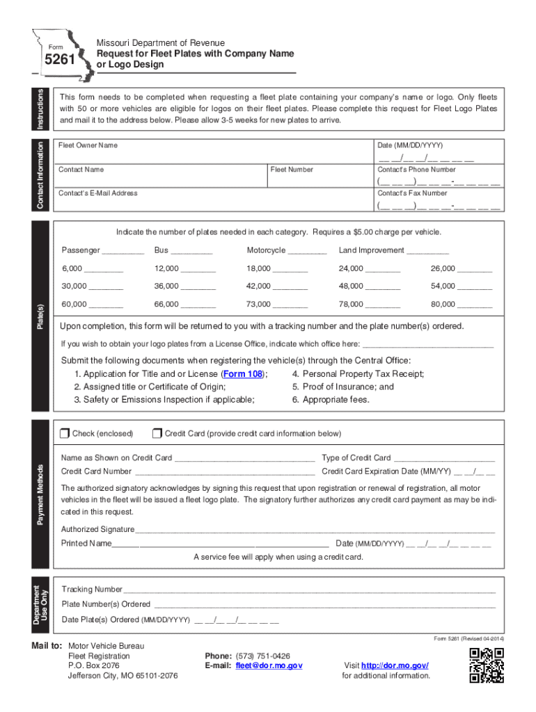 Reset Footprint Form Missouri Department of RevenueFormInstructionsRequest for Fleet Plates with Company Name
