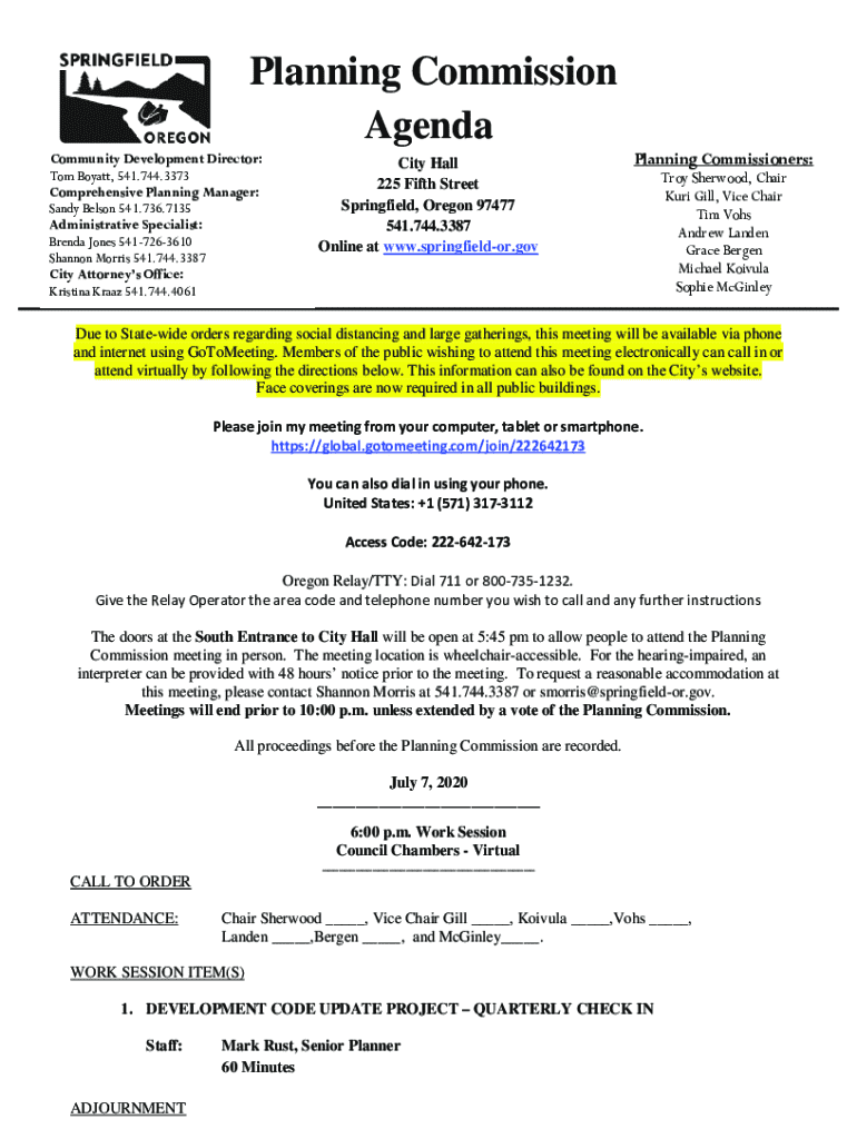 Planning Commission Agenda Community Development Director: Tom Boyatt, 541.744.3373 Comprehensive Planning Manager: Sandy Belson 541.736.7135 Administrative Specialist: Brenda Jones 5417263610 Shannon