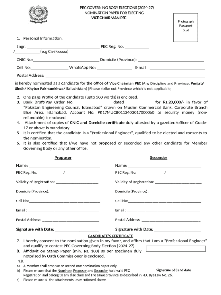 The NOMINATION--SVC-Election-2024-4.docx is a writable document required to be submitted to the specific address in order to provide specific info. It needs to be completed and signed, which may be done in hard copy, or using a particular solution e. g. PDFfiller. This tool lets you complete any PDF or Word document directly from your browser (no software requred), customize it according to your needs and put a legally-binding electronic signature. Right away after completion, user can send the NOMINATION--SVC-Election-2024-4.docx to the relevant person, or multiple individuals via email or fax. The blank is printable too thanks to PDFfiller feature and options proposed for printing out adjustment. Both in digital and in hard copy, your form will have got clean and professional look. It's also possible to turn it into a template for further use, there's no need to create a new document again. Just amend the ready form.