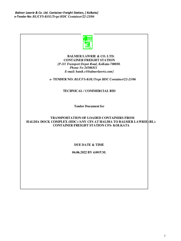 tender No: BL/CUSTOM/Test HD Container/2223/06BALMER LAURIE & CO. LTD.