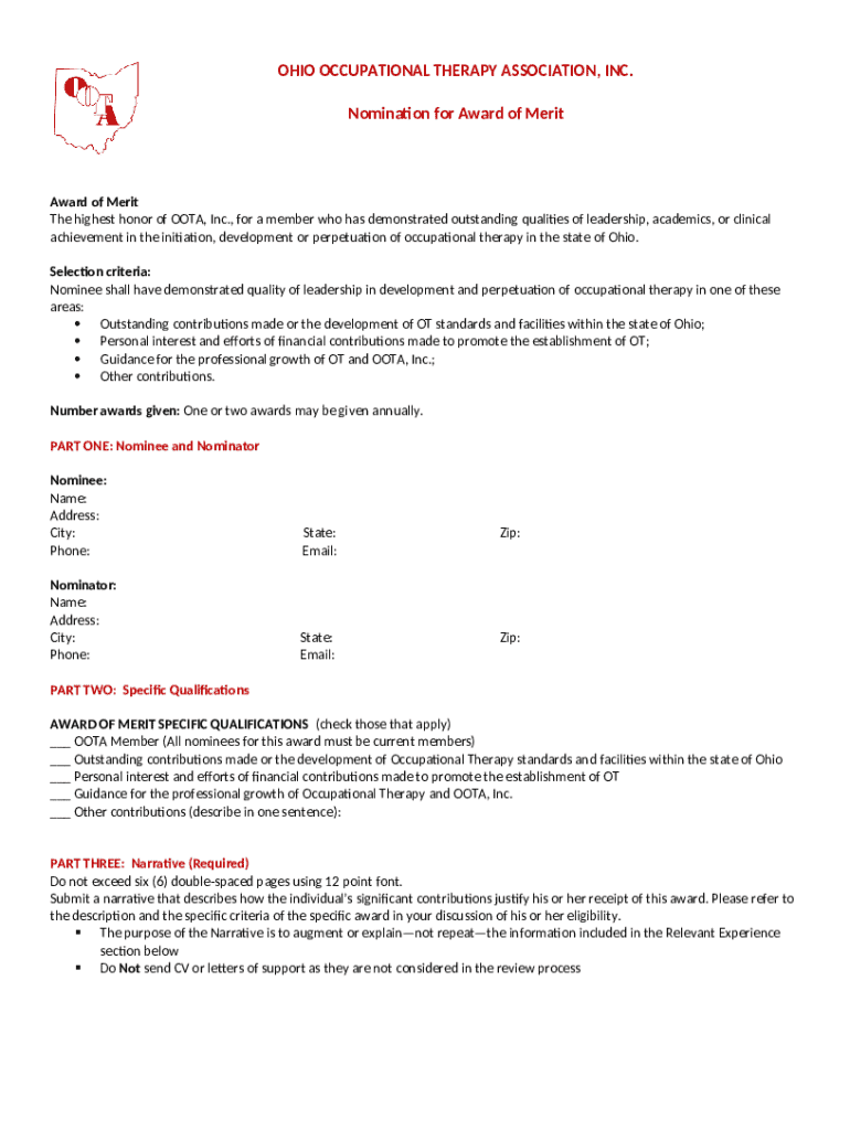 Instructions for the form Ohio Occupational Therapy Association - West Central District