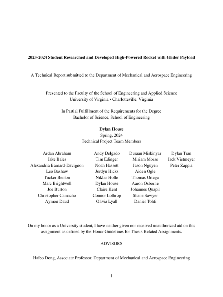 20232024 Student Researched and Developed Deflowered Rocket with Glider Payload Technical Report submitted to the Department of Mechanical and Aerospace EngineeringPresented to the Faculty of the