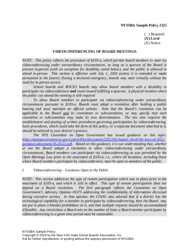 Comprehensive Guide to NYSSBA Sample Policy 2342 Form