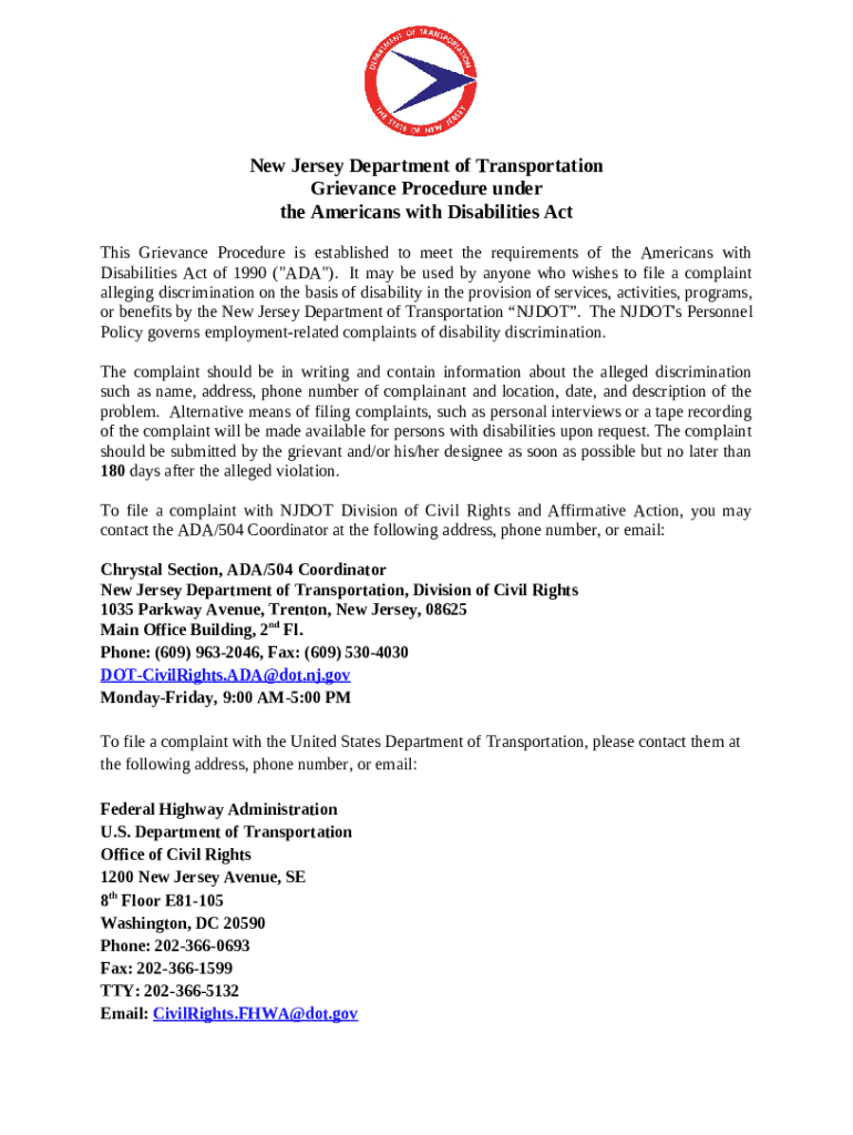 N.J. Admin. Code16:1B-2.2 - Required ADA NoticeState ... template instructions