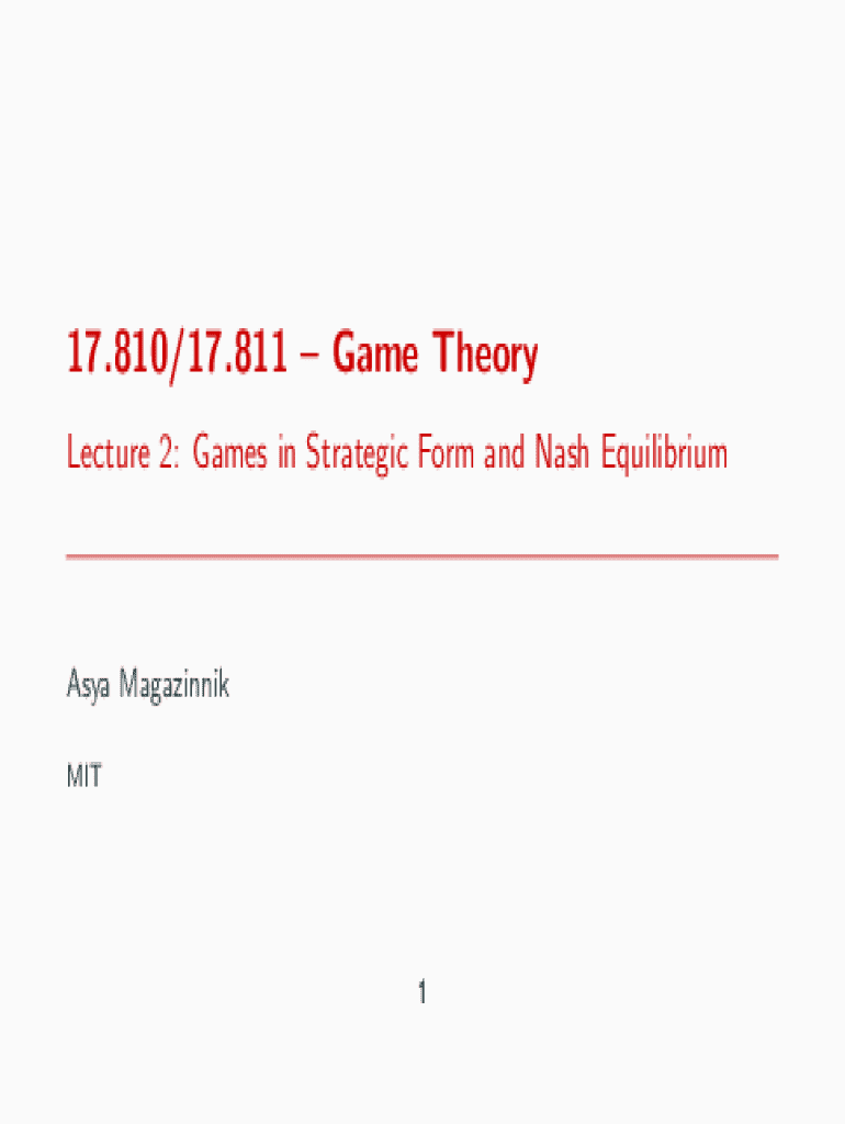 Get the free Lecture 2: Games in Strategic Form and Nash Equilibrium