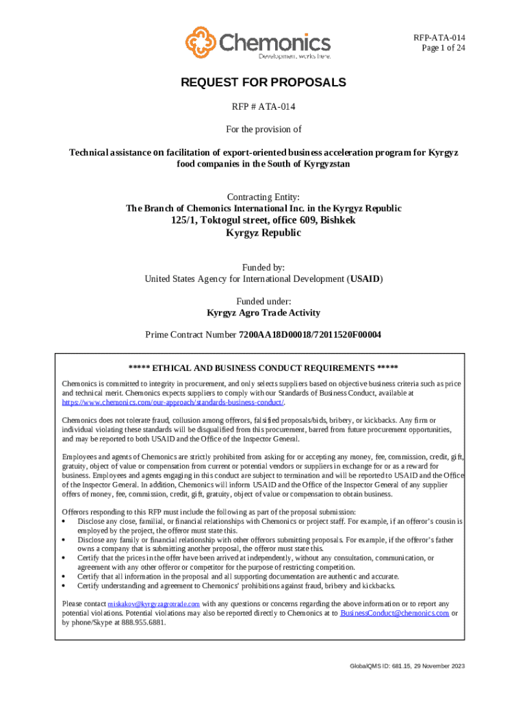 Technical assistance on facilitation of export-oriented business acceleration program for Kyrgyz food companies in the South of Kyrgyzstan template instructions
