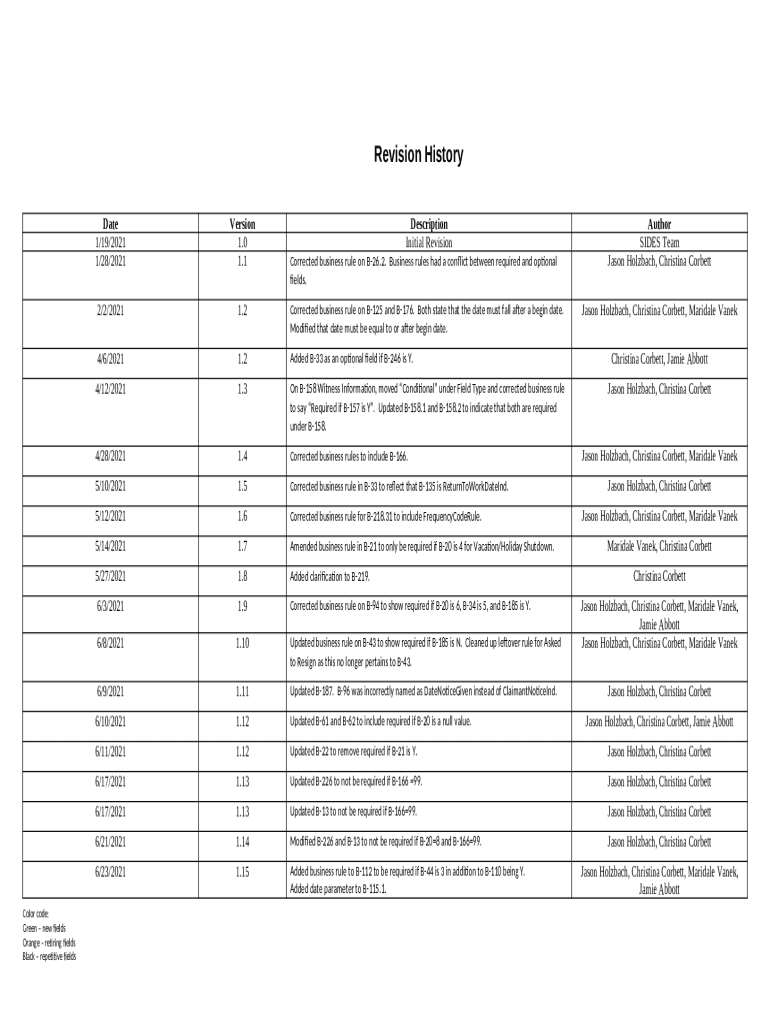 Utilizing a structured template is vital; it provides clarity and consistency, making it easier for teams to collaborate and maintain version control. It is particularly beneficial in scenarios such as project updates, regulatory compliance submissions, or any formal documentation that requires keeping precise records of revisions.
