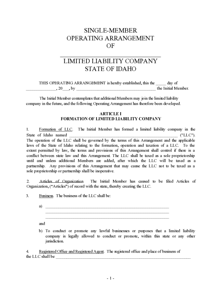Idaho Operating Agreement Form: A Comprehensive Guide