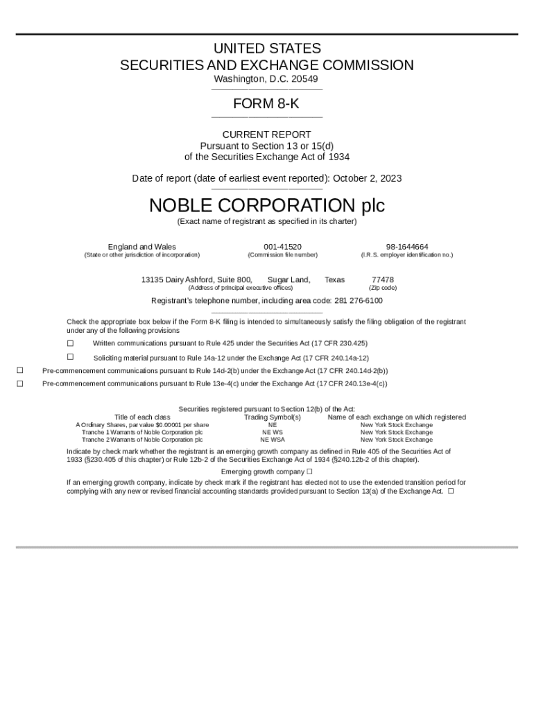 What is Noble Corp plc (: 8-K, Received: 10/02/2023 06:15:13) Form?