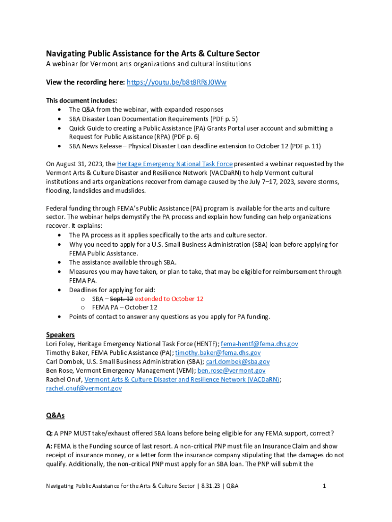 Get the free Navigating Public Assistance for the Arts & Culture Sector