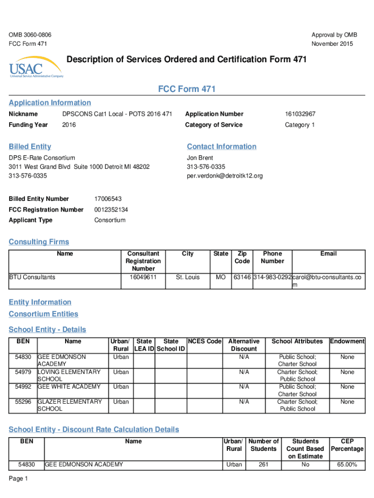 Filling out the DPS E-Rate Consortium Form requires specific information that outlines the institution's technology needs. Here are the primary components of the form: