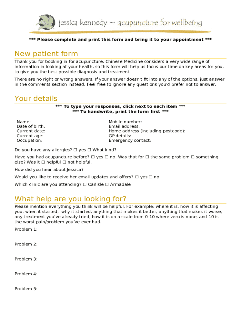 What is Acupuncture Intake - Fill Online, Printable, ... Form?