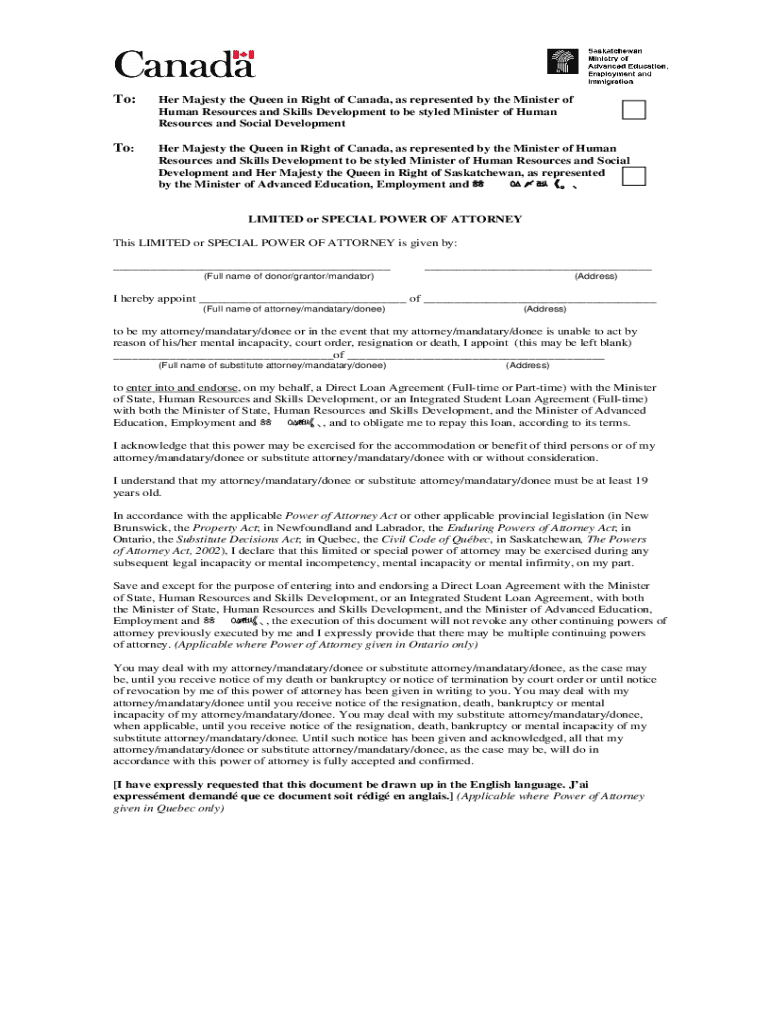 Get the free LIMITED or SPECIAL POWER OF ATTORNEY To
